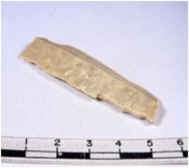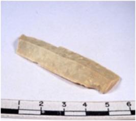 | Description / विवरण | A fragment of a rectangular shaped chert blade showing dorsal sides with sharp cutting edges having smooth surface and triangular section. |