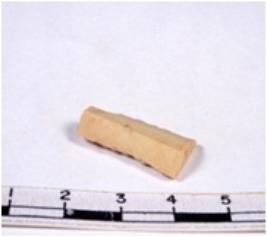 | Description / विवरण | A fragment of a rectangular shaped chert blade showing dorsal sides with sharp edges having smooth surface and triangular section. |