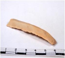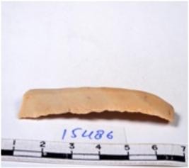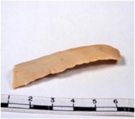 | Description / विवरण | A fragment of a rectangular shaped chert blade showing dorsal sides with sharp edges having smooth surface and triangular section. |