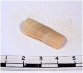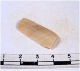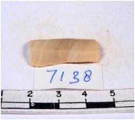 | Description / विवरण | A fragment of a rectangular shaped chert blade showing dorsal sides with sharp cutting edges having smooth surface and triangular section. |