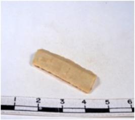 | Description / विवरण | A fragment of a rectangular shaped chert blade showing dorsal sides with sharp edges having smooth surface and triangular section. |