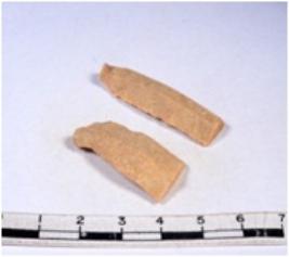 | Description / विवरण | A fragment of a rectangular shaped chert blade showing dorsal sides with sharp cutting edges having smooth surface and triangular section. |