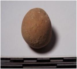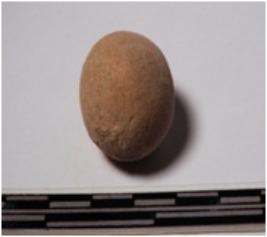 | Description / विवरण | A terracotta round shaped sling ball, circular in section of smooth surface. |