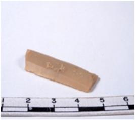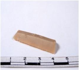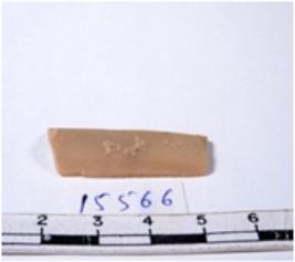 | Description / विवरण | A fragment of a rectangular shaped chert blade showing dorsal sides with sharp edges having smooth surface and triangular section. |