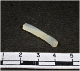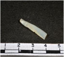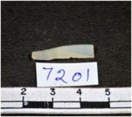 | Description / विवरण | A fragment of a rectangular shaped chalcedony blade showing dorsal sides with sharp edges having smooth surface and triangular section. |