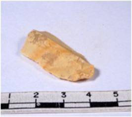 | Description / विवरण | A fragment of a rectangular shaped chert blade showing parallel sides with sharp edges having smooth surface and triangular section. |