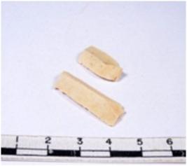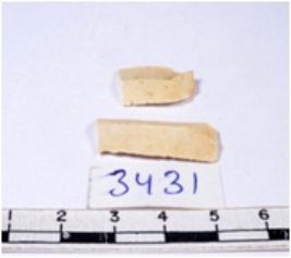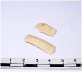 | Description / विवरण | A fragment of a rectangular shaped chert blade showing dorsal sides with sharp cutting edges having smooth surface and triangular section. |