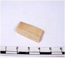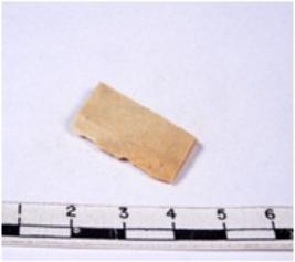 | Description / विवरण | A fragment of a rectangular shaped chert blade showing dorsal sides with sharp cutting edges having smooth surface and triangular section. |