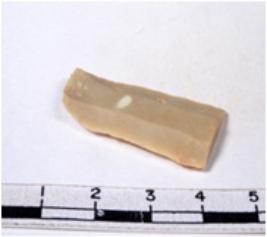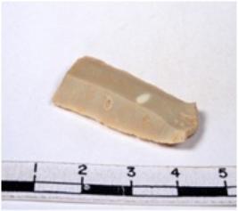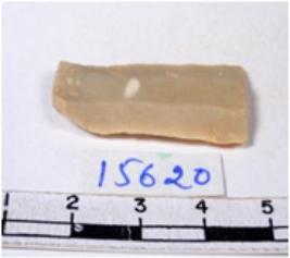 | Description / विवरण | A fragment of a rectangular shaped chert blade showing dorsal sides with sharp edges having smooth surface and triangular section. |