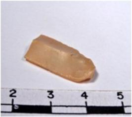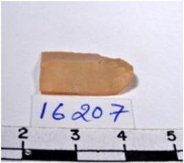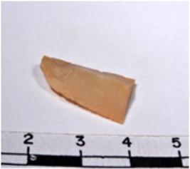 | Description / विवरण | A fragment of a rectangular shaped chert blade showing dorsal sides with sharp edges having smooth surface and triangular section. |