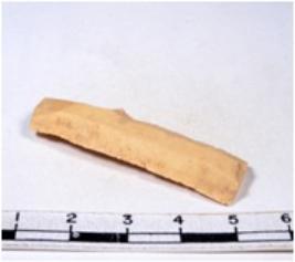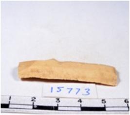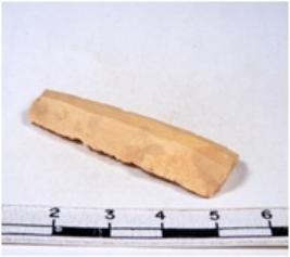 | Description / विवरण | A fragment of a rectangular shaped chert blade showing dorsal sides with sharp cutting edges having smooth surface and uneven section. |