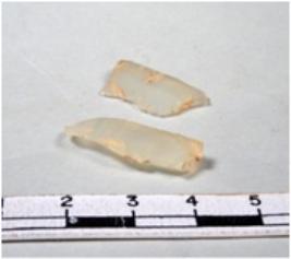 | Description / विवरण | A fragment of a rectangular shaped chalcedony blade showing dorsal sides with sharp edges having smooth surface and triangular section. |