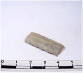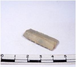 | Description / विवरण | A fragment of a rectangular shaped chert blade showing dorsal sides with sharp edges having smooth surface and triangular section. |