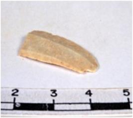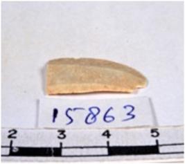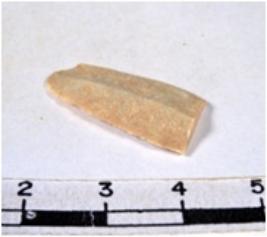 | Description / विवरण | A fragment of a rectangular shaped chert blade showing dorsal sides with sharp edges having smooth surface and uneven section. |