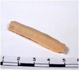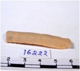 | Description / विवरण | A fragment of a rectangular shaped chert blade showing dorsal sides with sharp edges having smooth surface and triangular section. |
