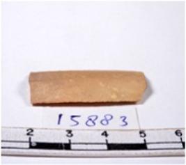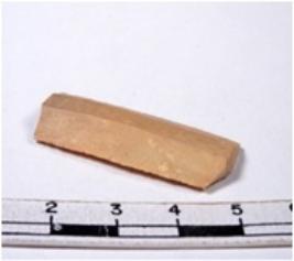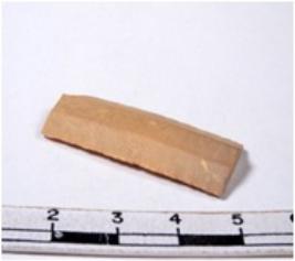 | Description / विवरण | A fragment of a rectangular shaped chert blade showing dorsal sides with sharp edges having smooth surface and triangular section. |