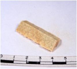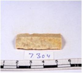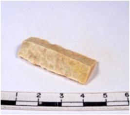 | Description / विवरण | A fragment of a rectangular shaped chert blade showing parallel sides with sharp edges having smooth surface and uneven section. |