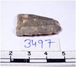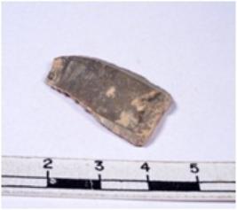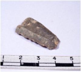 | Description / विवरण | A fragment of a rectangular shaped chert blade showing dorsal sides with sharp cutting edges having smooth surface and triangular section. |