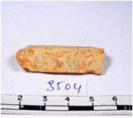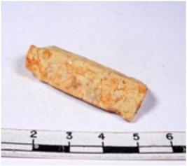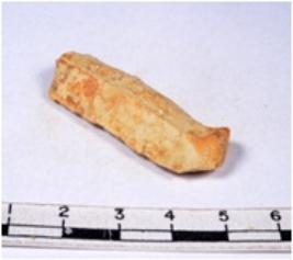 | Description / विवरण | A fragment of a rectangular shaped chert blade showing dorsal sides with sharp cutting edges having smooth surface and triangular section. |