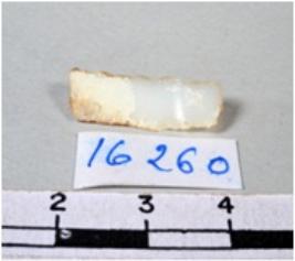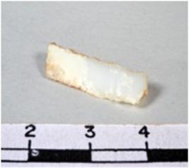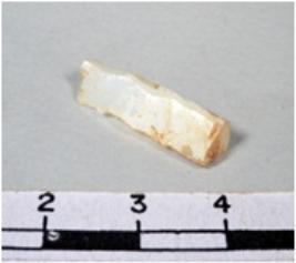 | Description / विवरण | A fragment of a rectangular shaped chalcedony blade showing dorsal sides with sharp cutting edges having smooth surface and uneven section. |