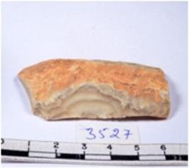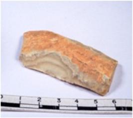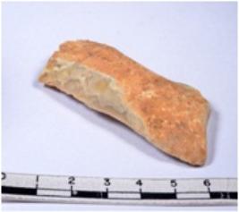 | Description / विवरण | A fragment of a rectangular shaped chert blade showing dorsal sides with sharp cutting edges having smooth surface and triangular section. |