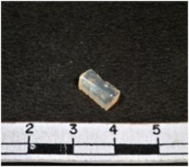| Description / विवरण | A fragment of a rectangular shaped chalcedony blade showing dorsal sides with sharp cutting edges having smooth surface and triangular section. |