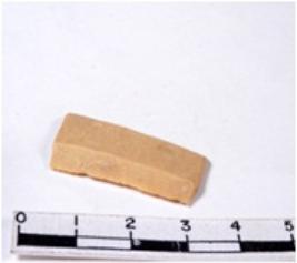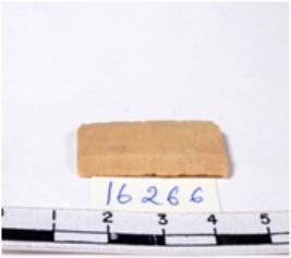 | Description / विवरण | A fragment of a rectangular shaped chert blade showing dorsal sides with sharp cutting edges having smooth surface and triangular section. |