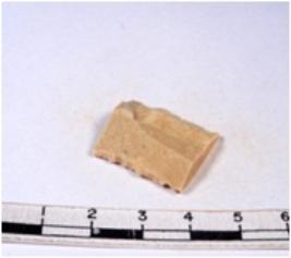 | Description / विवरण | A fragment of a rectangular shaped chert blade showing dorsal sides with sharp edges having smooth surface and triangular section. |