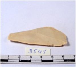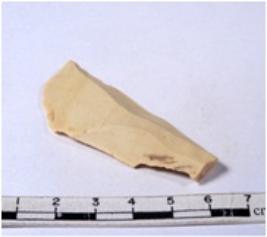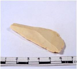 | Description / विवरण | A fragment of a rectangular shaped chert blade showing dorsal sides with sharp cutting edges having smooth surface and triangular section. |