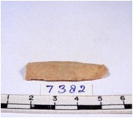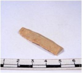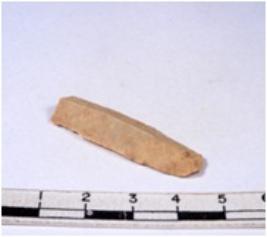 | Description / विवरण | A fragment of a rectangular shaped chert blade showing dorsal sides with sharp edges having smooth surface and triangular section. |