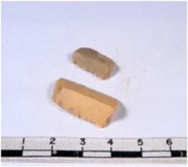 | Description / विवरण | A fragment of a rectangular shaped chert blade showing dorsal sides with sharp edges having smooth surface and triangular section. |