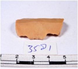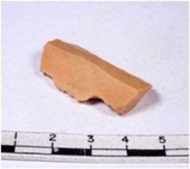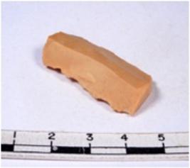 | Description / विवरण | A fragment of a rectangular shaped chert blade showing dorsal sides with sharp cutting edges having smooth surface and triangular section. |