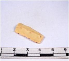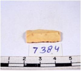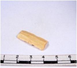 | Description / विवरण | A fragment of a rectangular shaped chert blade showing dorsal sides with sharp cutting edges having smooth surface and triangular section. |