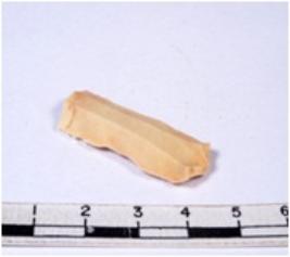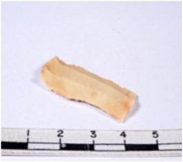 | Description / विवरण | A fragment of a rectangular shaped chert blade showing dorsal sides with sharp cutting edges having smooth surface and triangular section. |