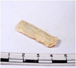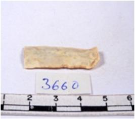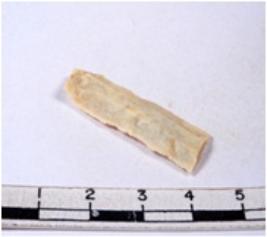 | Description / विवरण | A fragment of a rectangular shaped chert blade showing dorsal sides with sharp edges having smooth surface and triangular section. |