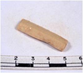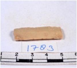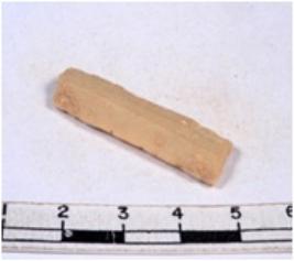 | Description / विवरण | A fragment of a rectangular shaped chert blade showing dorsal sides with sharp cutting edges having smooth surface and triangular section. |