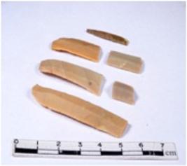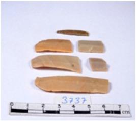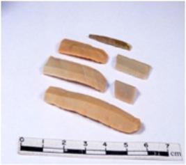 | Description / विवरण | A fragment of a rectangular shaped chert blade showing dorsal sides with sharp edges having smooth surface and triangular section. |