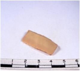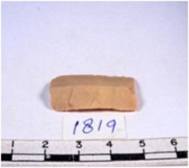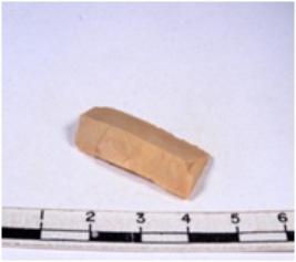 | Description / विवरण | A fragment of a rectangular shaped chert blade showing dorsal sides with sharp edges having smooth surface and triangular section. |