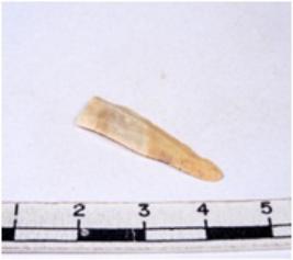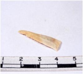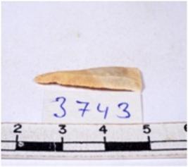 | Description / विवरण | A fragment of a rectangular shaped chert blade showing dorsal sides with sharp edges having smooth surface and triangular section. |