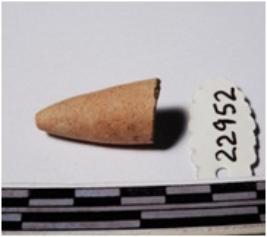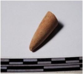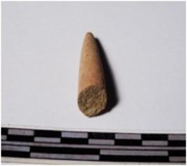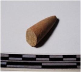 | Description / विवरण | A fragment of a terracotta point, pointed one end, circular in section of rough surface. |
