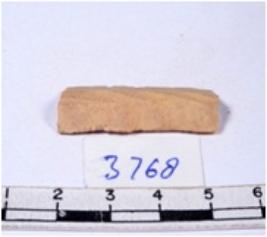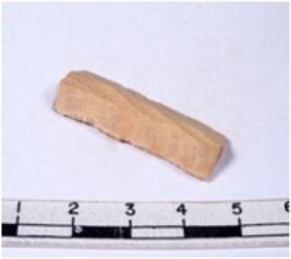 | Description / विवरण | A fragment of a rectangular shaped chert blade showing dorsal sides with sharp cutting edges having smooth surface and triangular section. |
