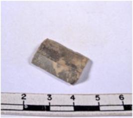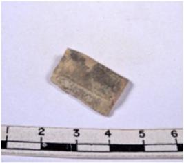 | Description / विवरण | A fragment of a rectangular shaped chert blade showing dorsal sides with sharp edges having smooth surface and triangular section. |