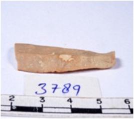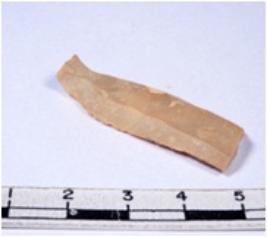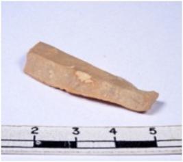 | Description / विवरण | A fragment of a rectangular shaped chert blade showing dorsal sides with sharp cutting edges having smooth surface and triangular section. |
