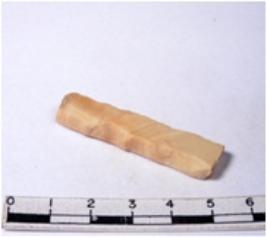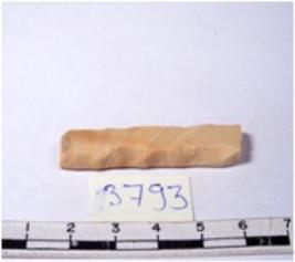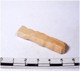 | Description / विवरण | A fragment of a rectangular shaped chert blade showing dorsal sides with sharp edges having smooth surface and triangular section. |