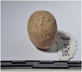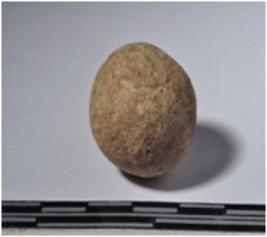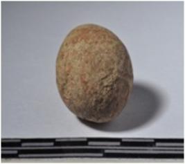 | Description / विवरण | A terracotta sling ball, round in shaped and smooth surface. |