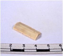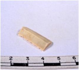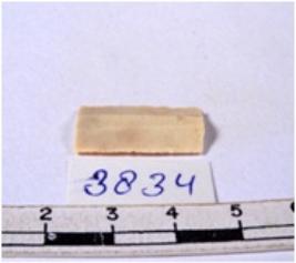 | Description / विवरण | A fragment of a rectangular shaped chert blade showing dorsal sides with sharp edges having smooth surface and triangular section. |