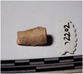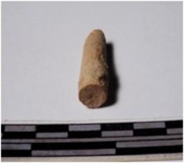 | Description / विवरण | A fragment of a terracotta point, broken pointed end, circular in section of smooth surface. |