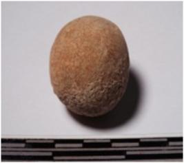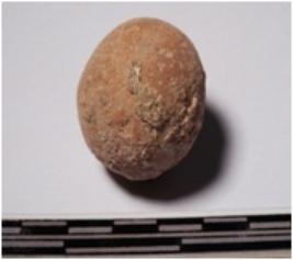 | Description / विवरण | A terracotta round shaped sling ball, circular in section of smooth surface. |