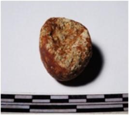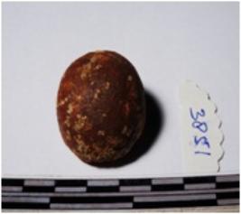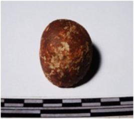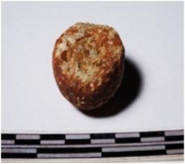 | Description / विवरण | A fragment of a terracotta sling ball globular in shape of smooth surface. |