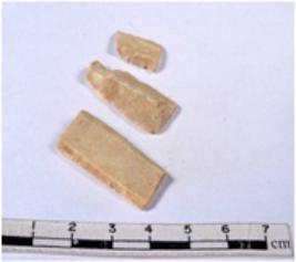 | Description / विवरण | A fragment of a rectangular shaped chert blade showing dorsal sides with sharp edges having smooth surface and triangular section. |